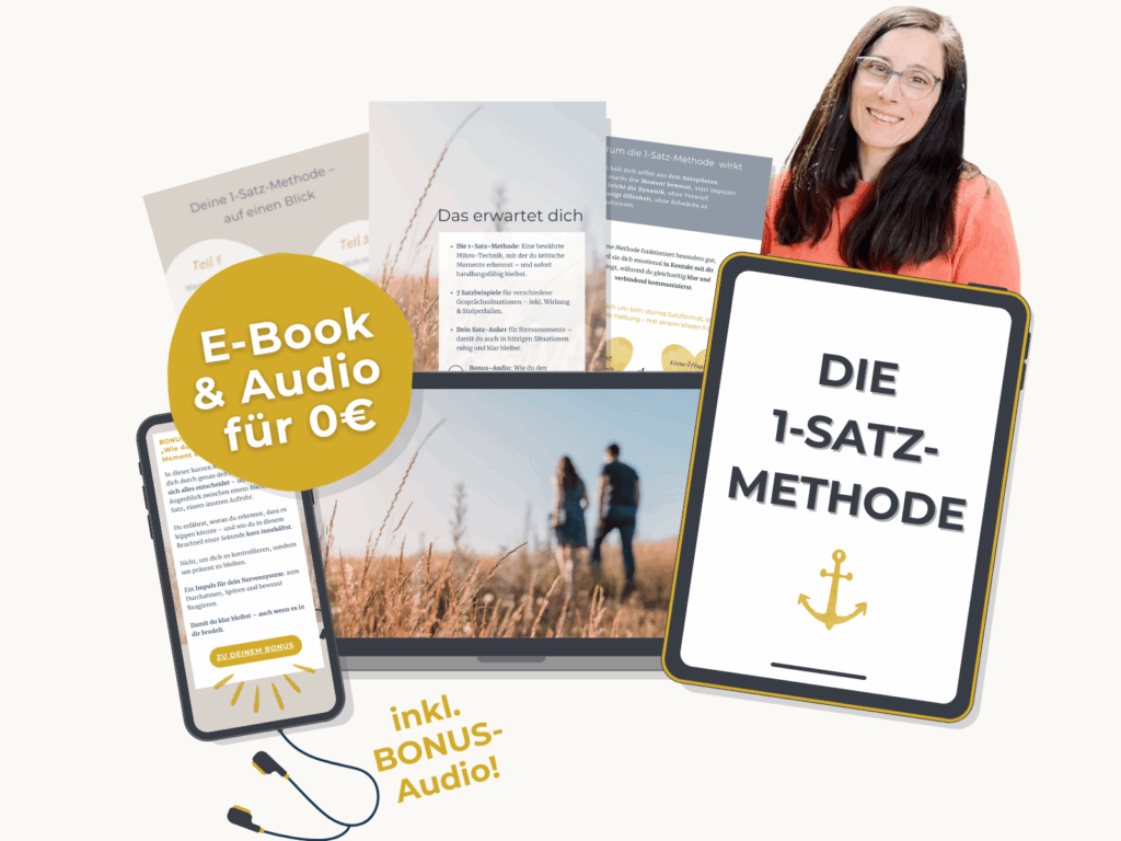 Kennst du das – ein Blick, ein Tonfall, und schon rutscht ihr in alte Muster? Die 1-Satz-Methode ist ein Mini-Guide mit Sofortwirkung, wenn du spürst: „Jetzt bloß nichts Falsches sagen.“